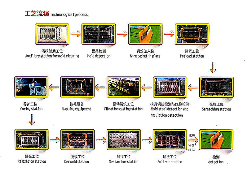 特 點(diǎn):工位自動化升級投入低,自動化、智能化程度高,相對于原工藝同等日產(chǎn)量,可節(jié)約40%的土地面積、減少50%的廠房建設(shè)、70%人員、70%的起吊設(shè)備、50%的土建,轉(zhuǎn)場成本只有原來的20% 。